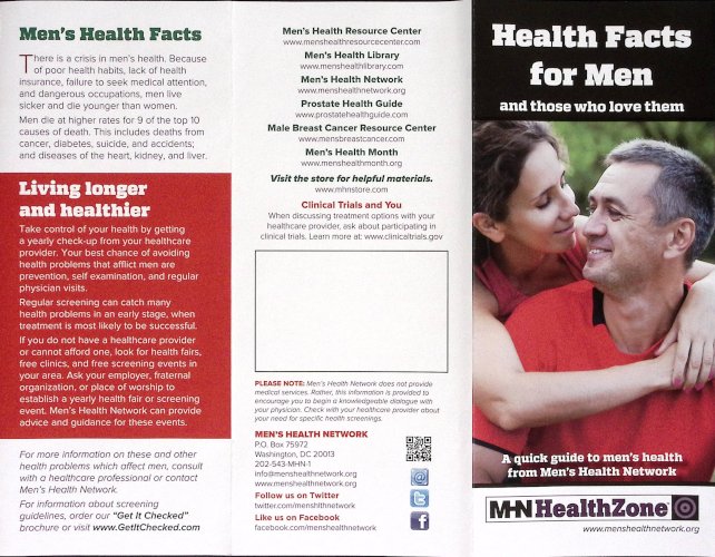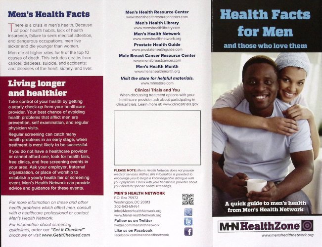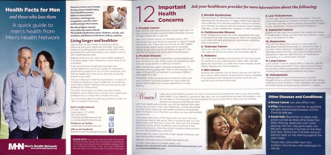Health Fact for Men. Features 12 important health conditions that affect men.