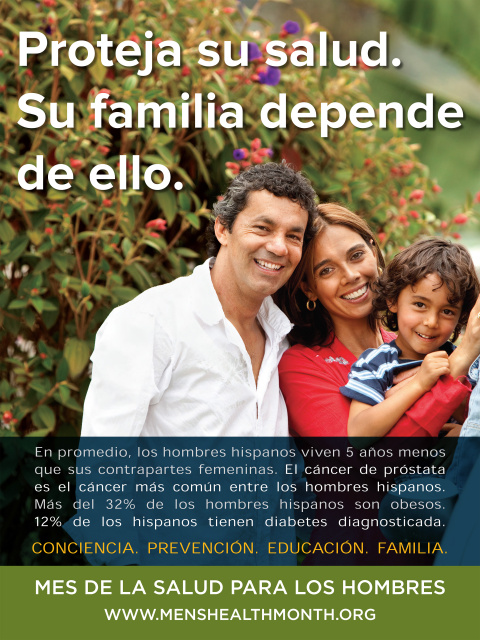 Men’s Health Poster – Spanish. Features the Men’s Health Month web address.