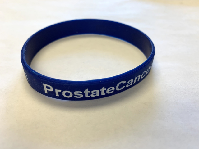 Blue debossed (indented print) Silicone wristbands promoting prostate cancer awareness and screening guidelines.